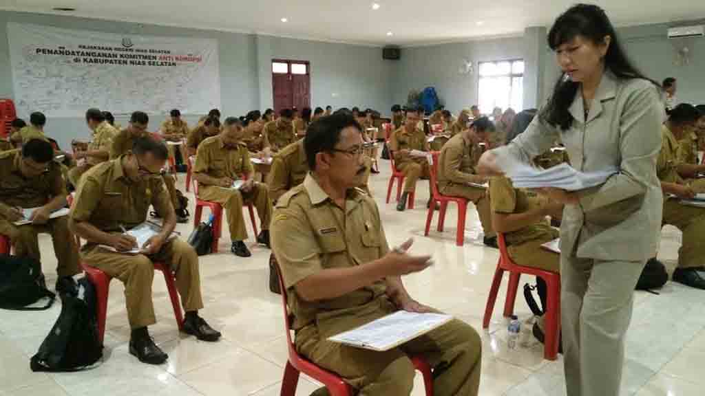 Pemerintah Kabupaten Nias Selatan melaksanakan ujian kenaikan golongan tingkat I dan tingkat II bagi 67 Pegawai Negeri Sipil (PNS). Ujian dilaksanakan di Aula Kantor Bupati Nias Selatan, Jalan Arah Lagundri KM 5, Senin (20/2/2017).