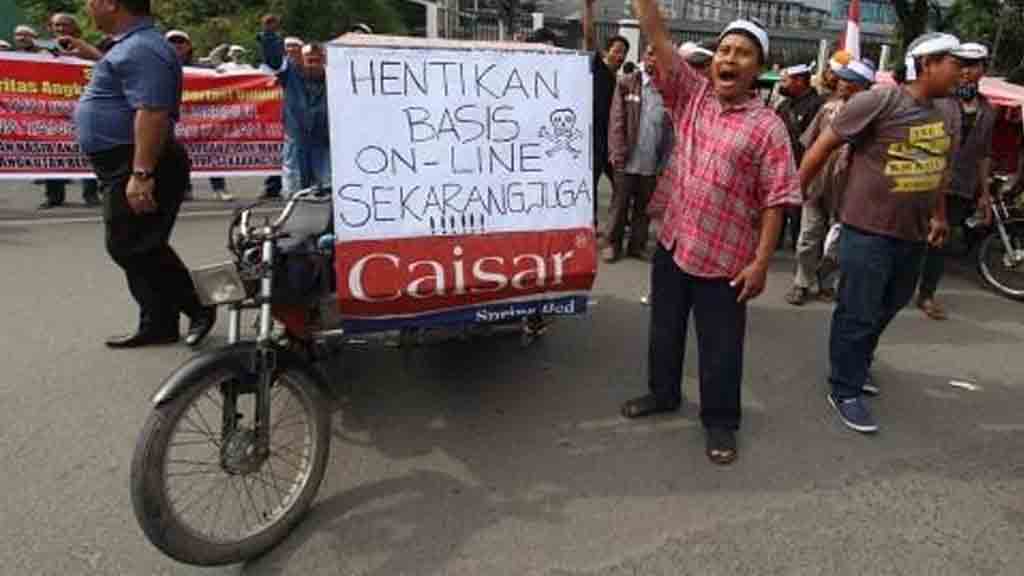 Pengemudi Betor Unjuk Rasa Menentang Angkutan Online