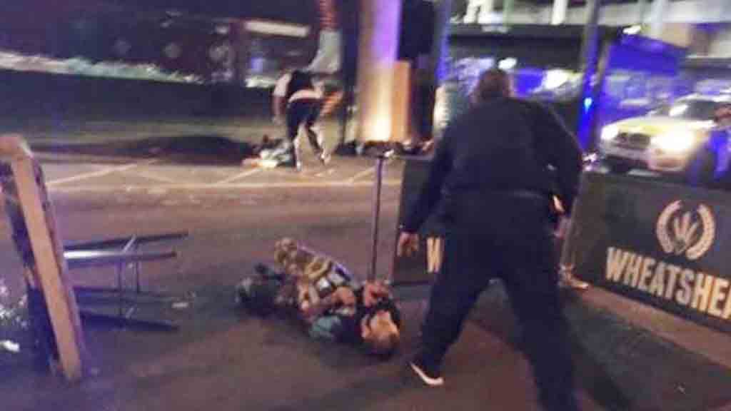 Sebuah foto memperlihatkan dua orang pelaku yang terbaring di tanah setelah ditembak mati polisi di bar Wheatsheaf di Pasar Borough. Seorang pelaku lain juga dilaporkan tewas ditembak polisi sedang dua lainnya masih buron. Dari foto tersebut terlihat keduanya mengenakan semacam rompi anti tusuk.