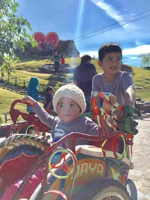 “Sementara fasilitas yang ada seperti flaying fox, kereta mini, becak mini, kolam renang (untuk anak-anak), kolam tangkap ikan, panahan, berkuda dan lainnya,” urainya.