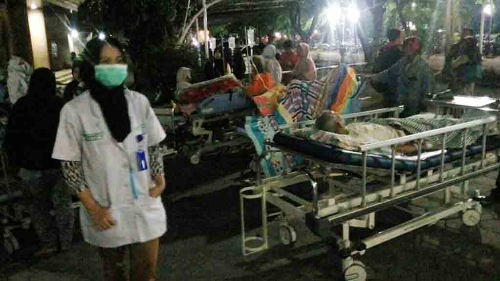 Pasien RSUD Banyumas dievakuasi dari gedung yang mengalami kerusakan akibat gempa yang terjadi Jumat (16/12/2017)(Foto: Dok RSUD Banyumas/net)