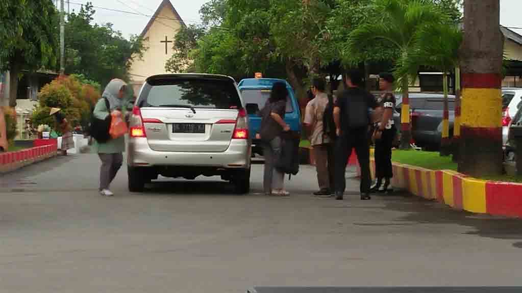 Petugas Provost menghentikan mobil yang membawa tim penyidik. Karena masih ada apel pasukan pelataran parkir, para penyidik diminta turun dari mobil.