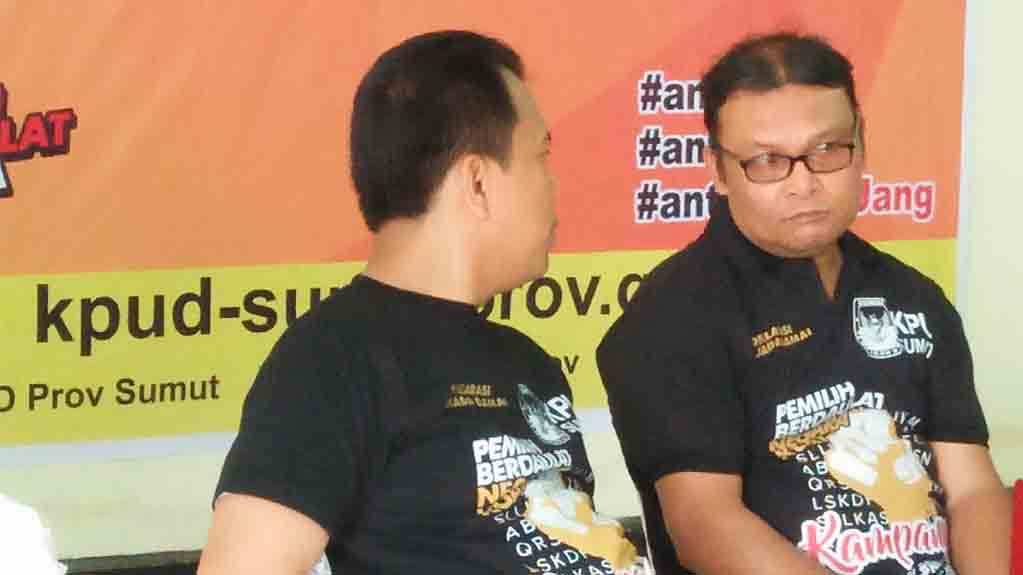 Komisioner KPU Sumut Benget Silitonga (kanan) dan anggota Bawaslu Sumut Herdi Munthe (Foto: Ingot Simangunsong