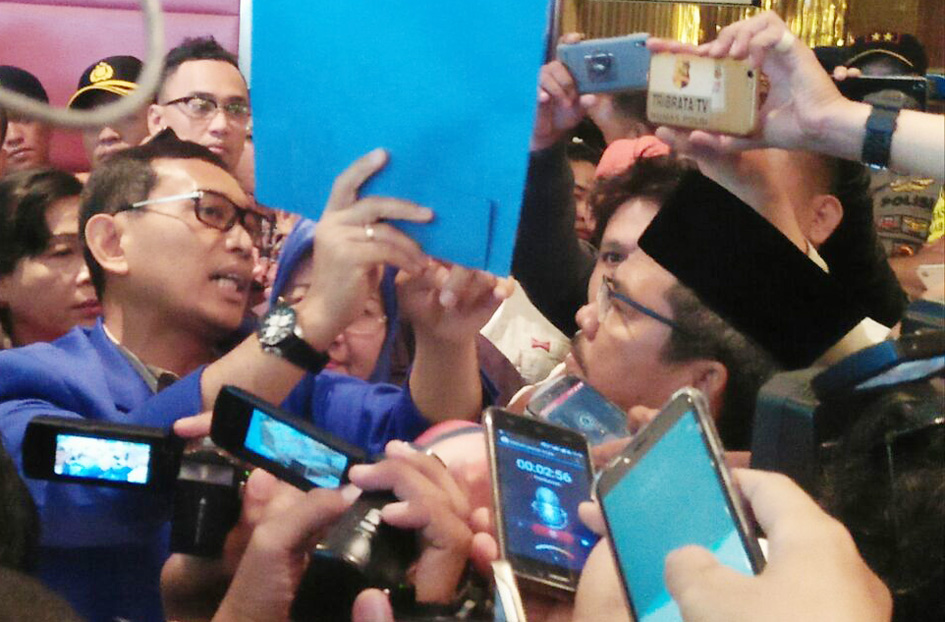 Status tersangka terhadap JR tersebut disampaikan usai gelar perkara oleh Gakkumdu, di Kantor Badan Pengawas Pemilu (Bawaslu) Sumut., Jalan Adam Malik, Medan, Kamis (15/3/2018).