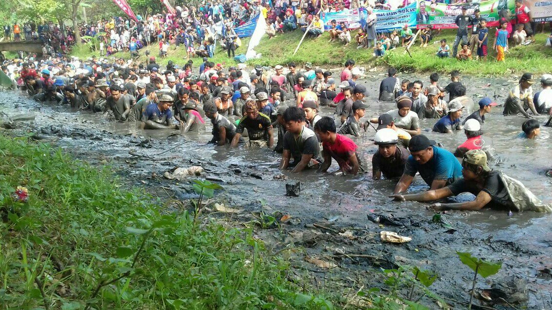 Kabupaten Tangerang – Dalam rangka memperingati hari bumi nasional, Forum Rajeg Bersatu (FRB), menyelenggarakan lomba gogo mania, dibantaran anak Sungai Cisadane, Jalan Raya Cadas Kukun, Desa Sukamanah, Kecamatan Rajeg, Kabupaten Tangerang, Minggu (29/04/2018).