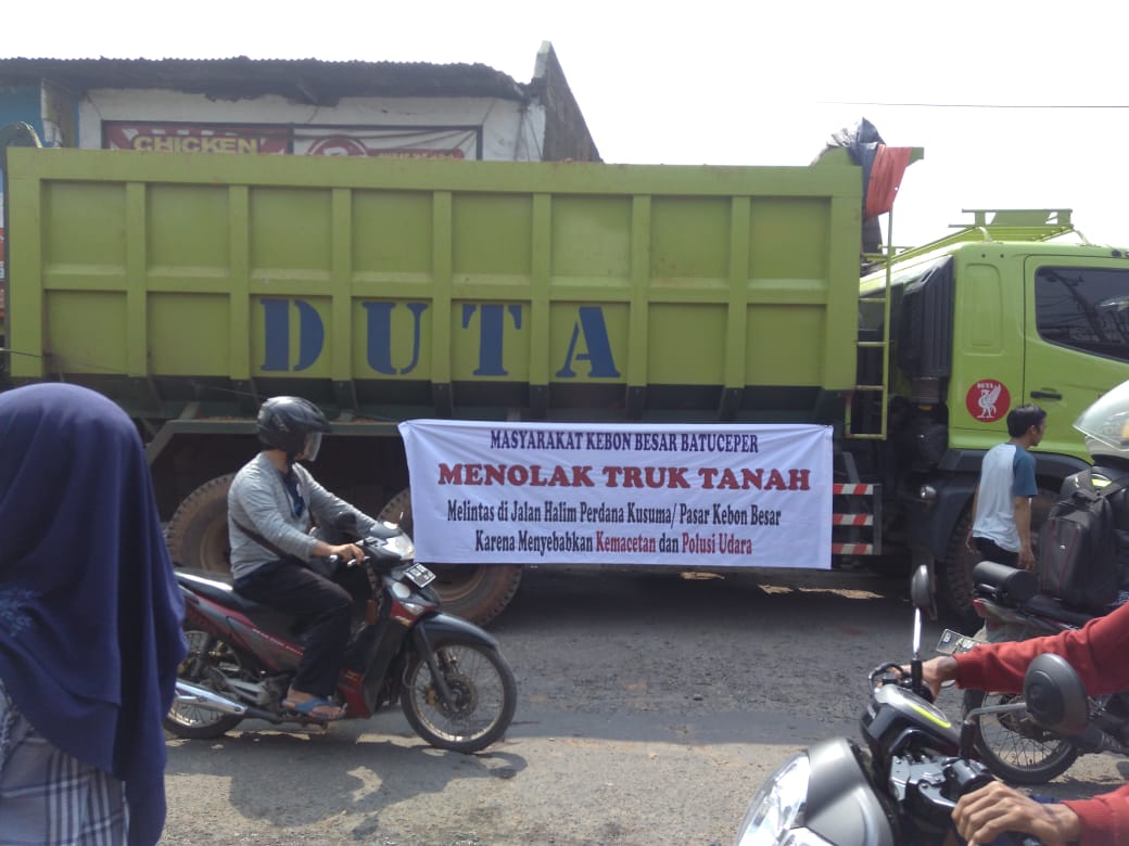 Kota Tangerang – Puluhan warga Kebon Besar, Kecamatan Batuceper, Kota Tangerang menghadang truk-truk pengangkut tanah, Selasa (7/5/2019).
